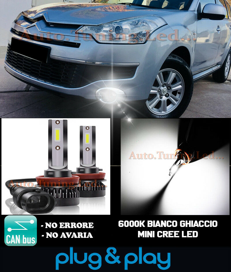LAMPADE FENDINEBBIA A LED CREE CITROEN C-CROSSER CAMBUS BIANCO GHIACCIO 8000LM