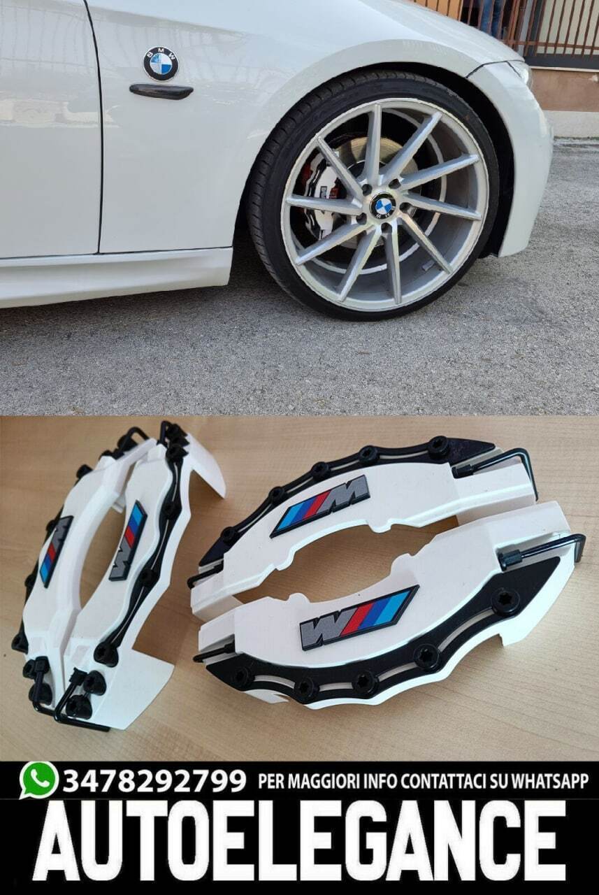 BMW 4x COVER COPRI PINZE FRENI BIANCHE ANTERIORI & POSTERIORI LOOK M NEW -2