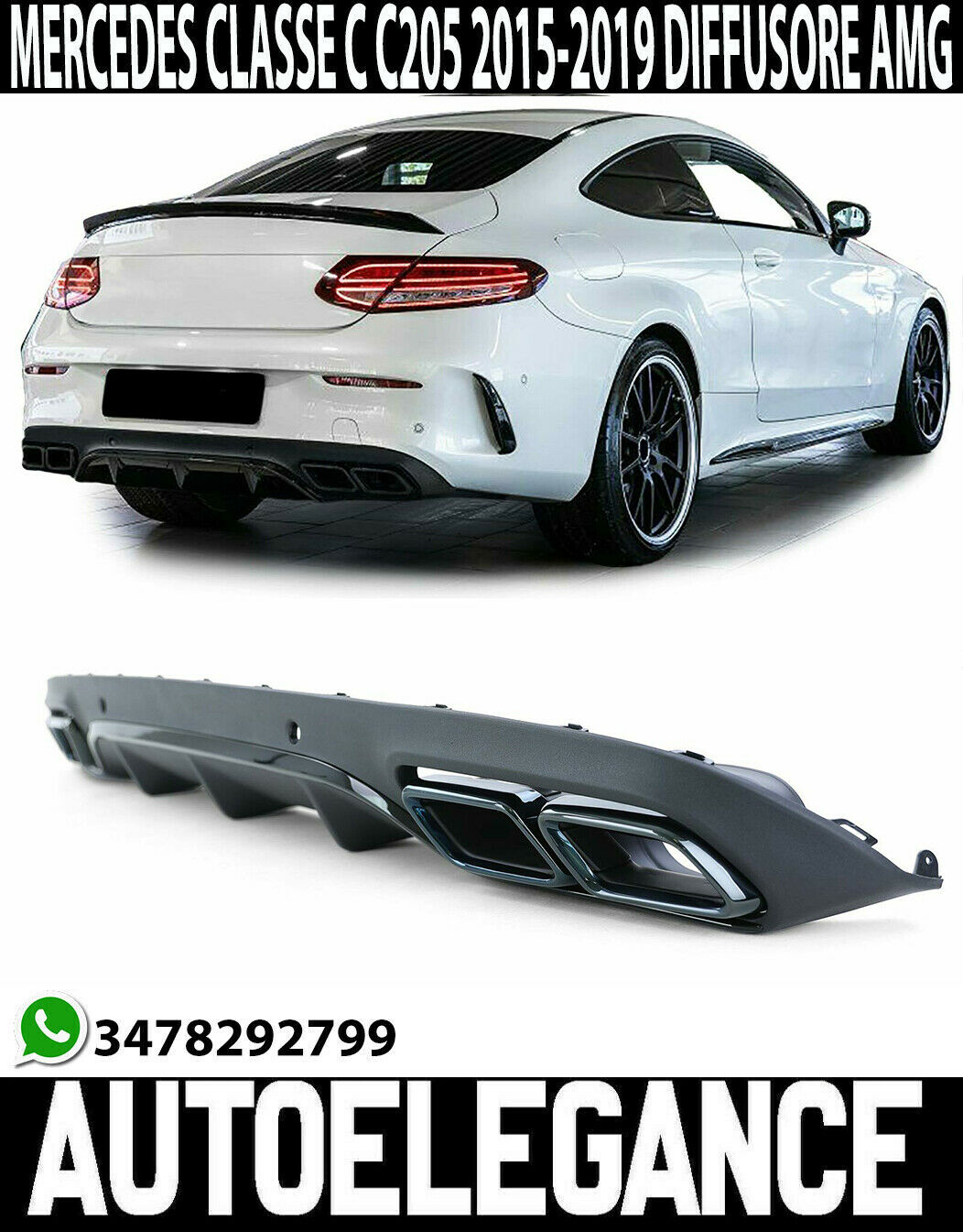 Mercedes C C205 A205 Coupe Cabrio 14-19 Diffusor Hinten Anschlüsse AMG