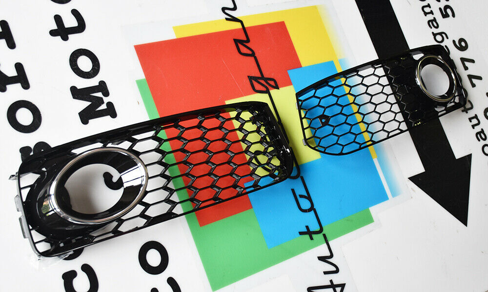 1 Paar (links + rechts) Honeycomb Nebelscheinwerfergitter mit Chromrand RS5 DESIGN NUR FÜR STANDARDSPOßSTANGE * Top Qualität * Wichtig !! PLUG & PLAY Wichtig !! - Kein weiteres Zubehör erforderlich (Plug & Play) KATALOGBESCHREIBUNG Passend für: Audi A5 COUPE - SPORTBACK Baujahr. 2007-2011 Nicht geeignet für Sline / S5 / RS5 Modelle Nicht geeignet für RESTYLING 2012+ Modell 100% neu Schöne, trendige Optik • Aus hochwertigem ABS gefertigt • Absolut überzeugende Optik Wichtig: Einfache und schnelle Montage garantiert. • ECE-geprüft * Weitere Informationen per MAIL oder Tel. * ... Klicken Sie unten für die vollständige Beschreibung