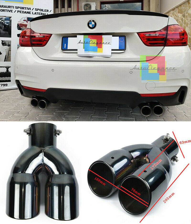 1 Paar (rechts + links) Sportliche EndrohreGLÄNZEND SCHWARZ SEHENAUS EDELSTAHL