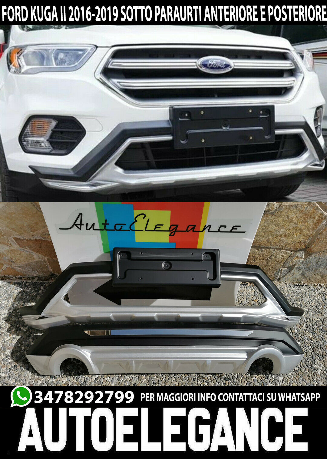Abajo Parachoques Para Ford Kuga II 2016-2019 Spoiler Delantero Y Trasero ABS