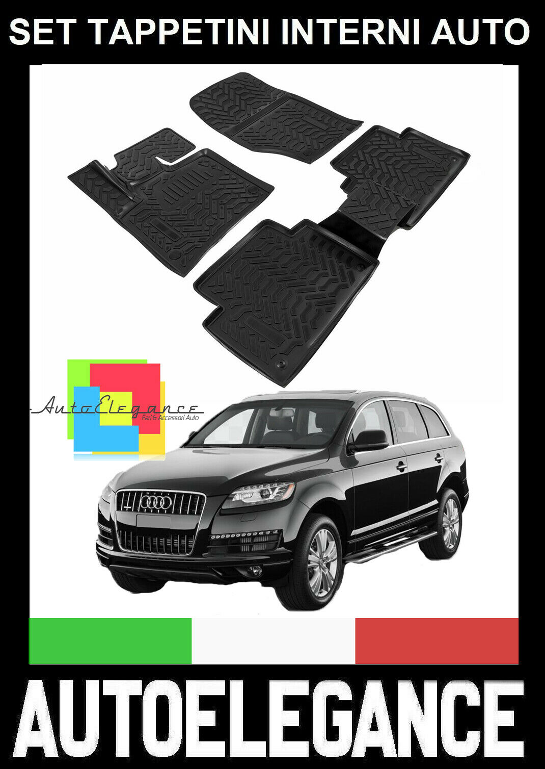 AUDI Q7 4L 2006-2014 SET TAPPETINI INTERNI AUTO IN GOMMA SU MISURA TAPPETI -AT-
