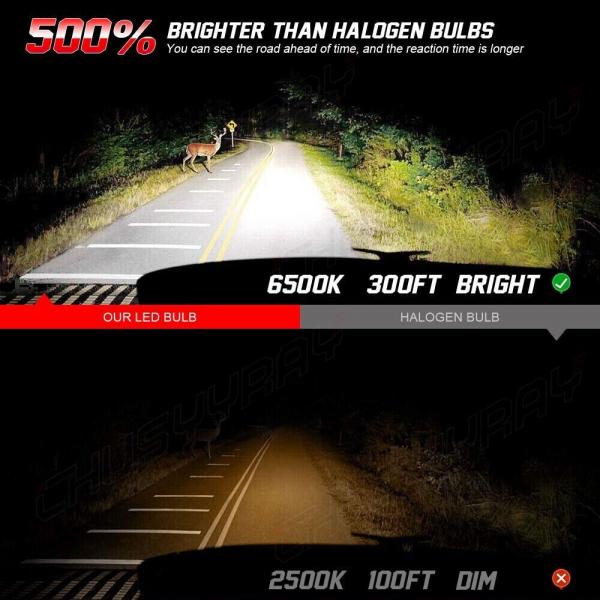 ?300% più luminoso delle alogene?: Utilizzando chip LED di qualità superiore, ogni set di lampadine a LED CHUSYYRAY Hi/Lo beam 9005+H7+H3 fornisce 12.000 lumen, 180 volte la luminosità della lampada alogena e una visione più chiara con protezione degli occhi da 6.000 K, vedere ulteriormente e ottieni più tempi di reazione, il che rende la tua guida notturna più sicura.