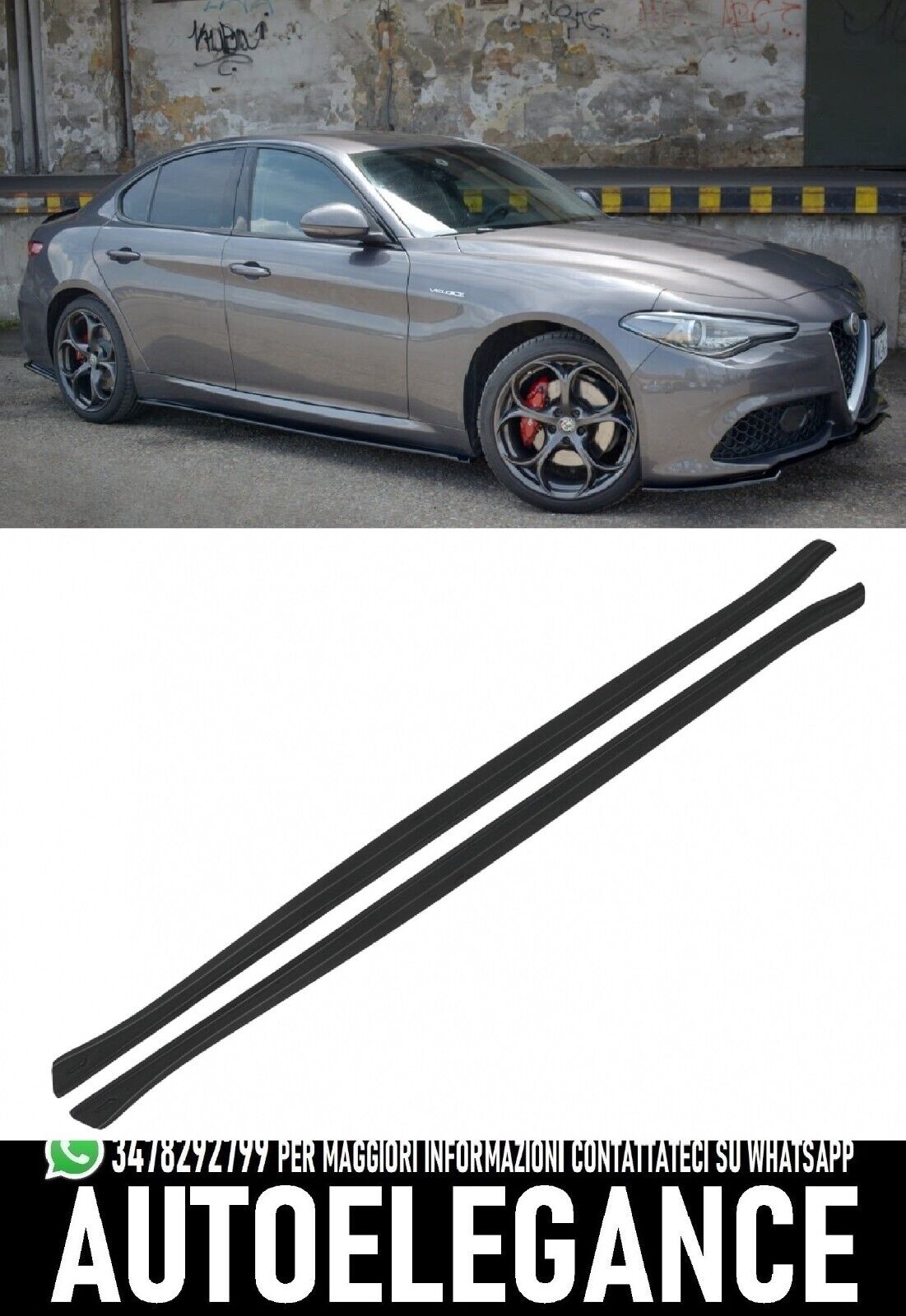Estensioni delle minigonne laterali di Alfa Romeo Giulia realizzate in materiale plastico ABS di alta qualità nella tecnologia più recente della macchina termoformatrice con montaggio facile ed eccellente. Il materiale plastico ABS che utilizziamo per la produzione di prodotti è disponibile in nero lucido con superficie antigraffio e protezione UV. Il prodotto inoltre, ha una pellicola protettiva che suggerisce la buccia prima del montaggio.