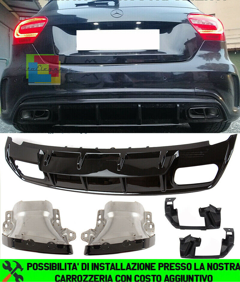 Mercedes Klasse A W176 2012-2018 Diffusor Hinten & Anschlüsse Schwarze Look AMG