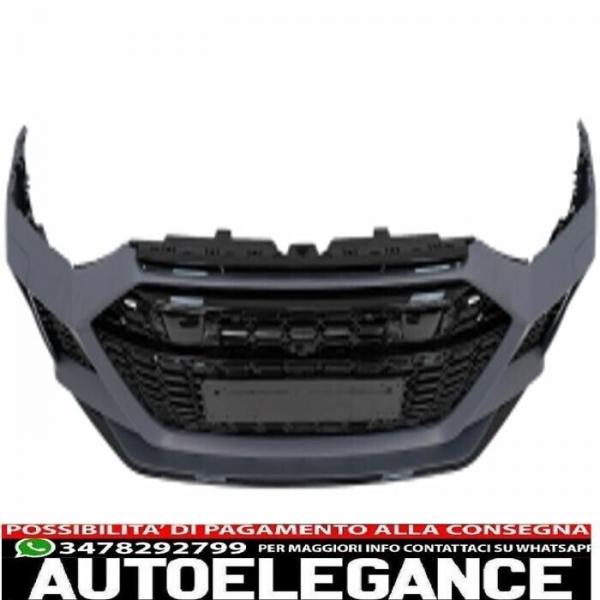 Paraurti anteriore dotato di griglia centrale, griglie laterali e copertura gancio traino