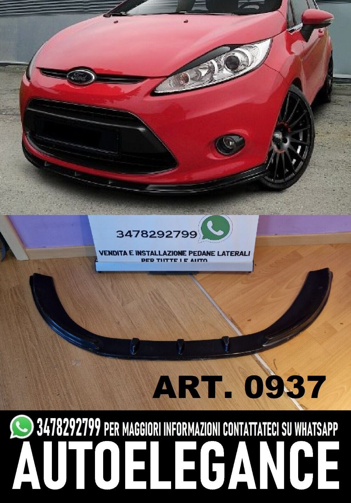 SPLITTER ANTERIORE PER FORD FIESTA MK7 2008-2012 STANDARD NERO LUCIDO LOOK SPORT