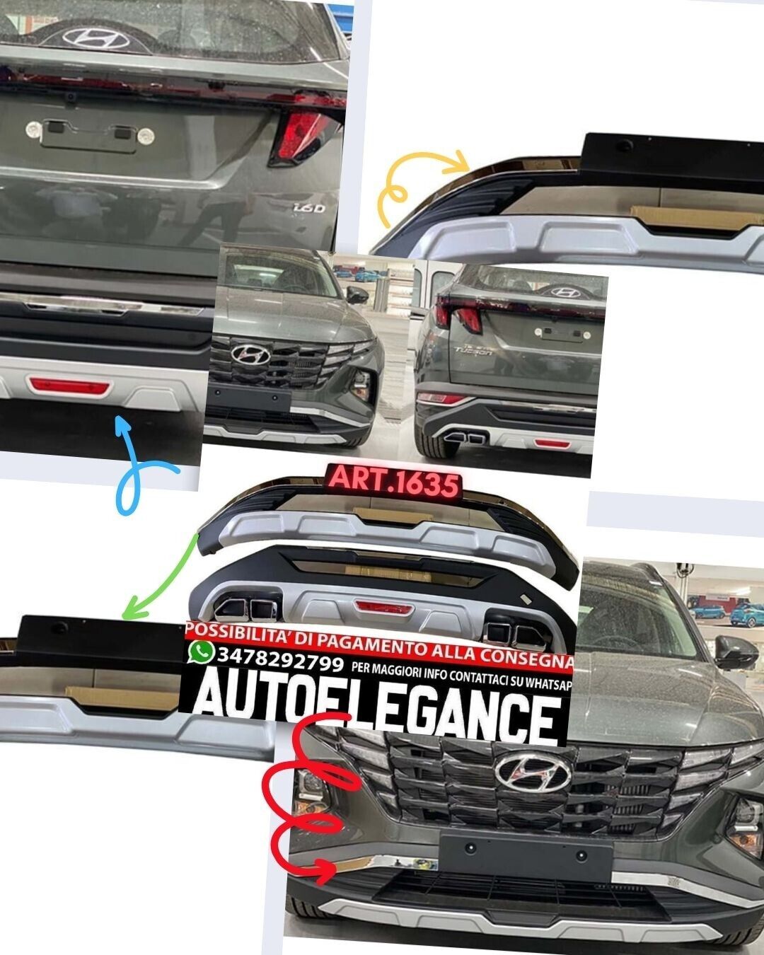 KIT SOTTO PARAURTI ADATTO PER HYUNDAI TUCSON 2020+ ANTERIORE + POSTERIORE ABS