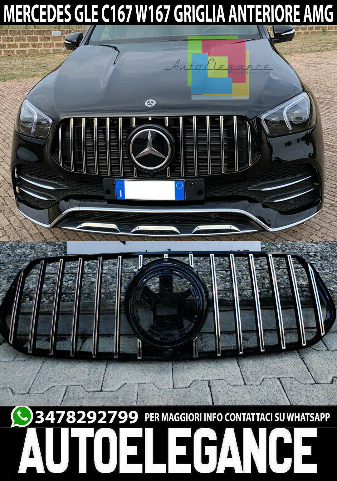 GRIGLIA ANTERIORE MERCEDES GLE W167 2019+ MASCHERINA PROFILI SATINATI