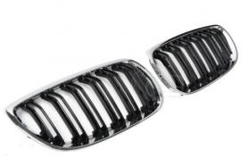ADATTO PER BMW SERIE 3 E92 E93 06-10 GRIGLIA DOPPIA BARRA CROMATA NERA-mostra il
