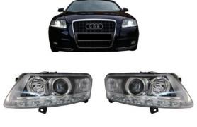 Fari allo xeno LED DRL per Audi A6 C6 4F 04.04-08 Cromati Senza AFS-mostra il ti