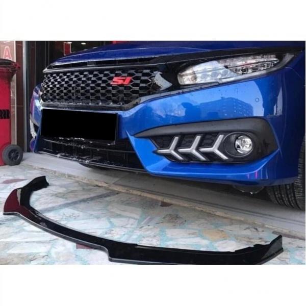 SPLITTER 3 PEZZI ADATTO PER HONDA CIVIC FC5 2016+ LOOK TYPE R NERO LUCIDO