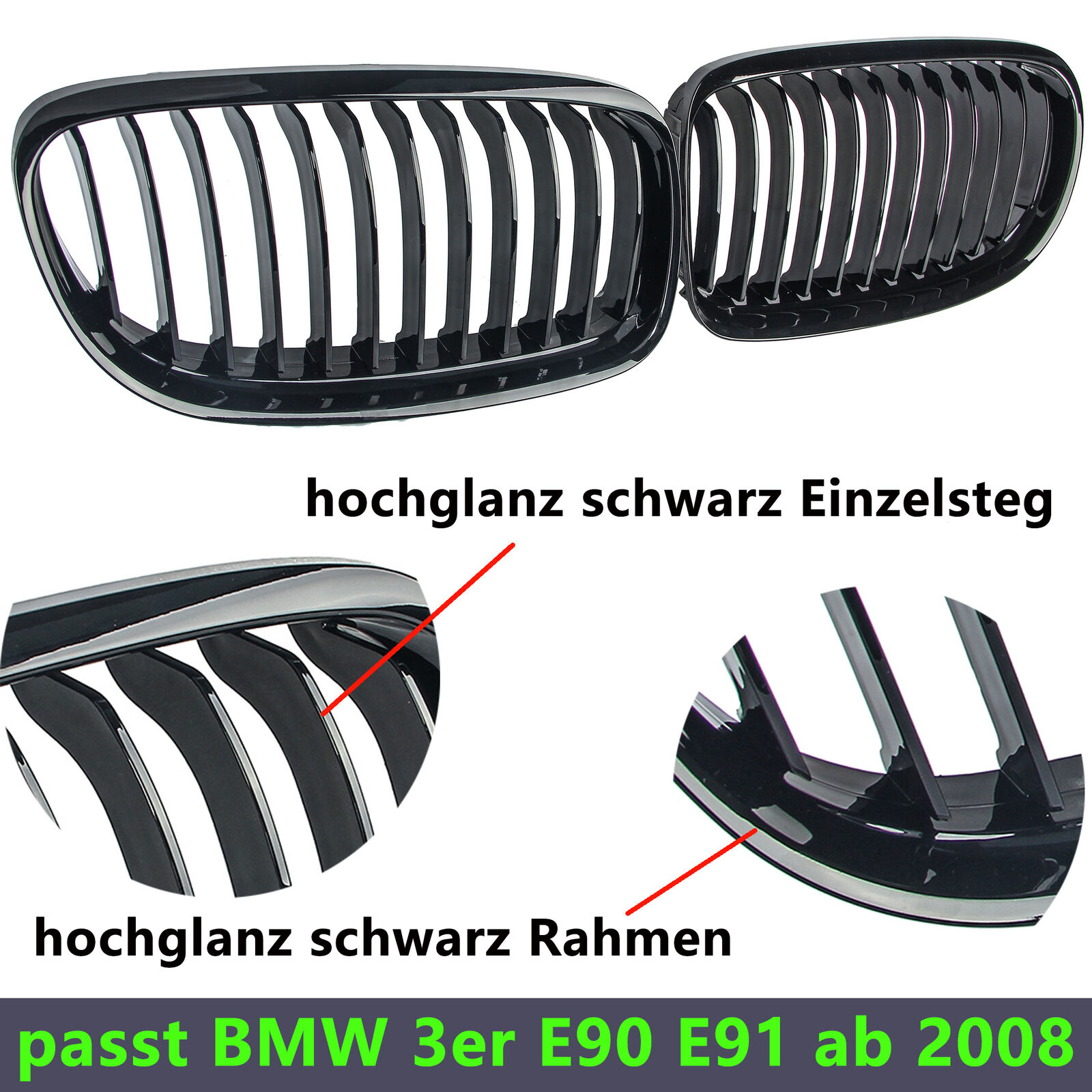 RADIATOR GRILLE INDIVIDUAL KIDNEYS SUITABLE FOR BMW 3 Series E91 E90 08-12 GLOSS
