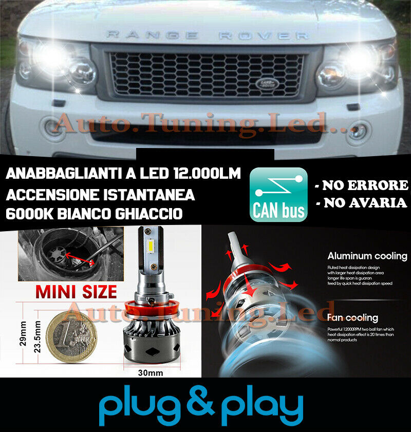 LAMPADE ANABBAGLIANTI LED RANGE ROVER SPORT L320 ISTANTANEO NO AVARIA 12.000LM