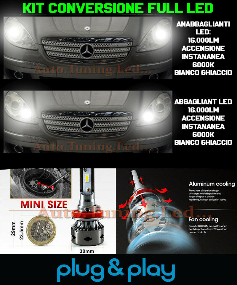 LAMPADE ANABBAGLIANTI + ABBAGLIANTI LED 16.000LM PER MERCEDES CLASSE A W169
