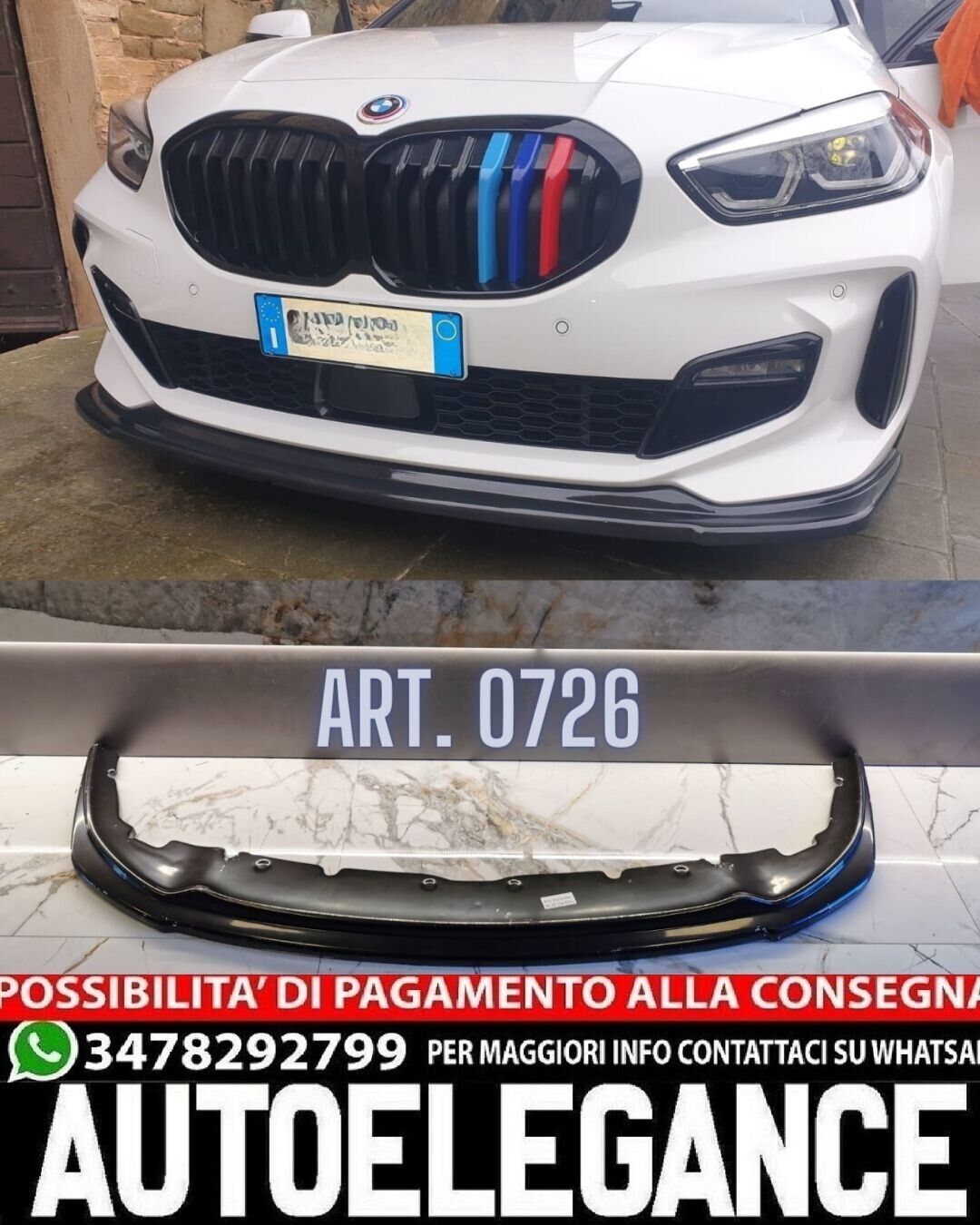 SPLITTER ADATTO PER BMW SERIE 1 F40 MSPORT LOOK NERO LUCIDO DESIGN SPORTIVO
