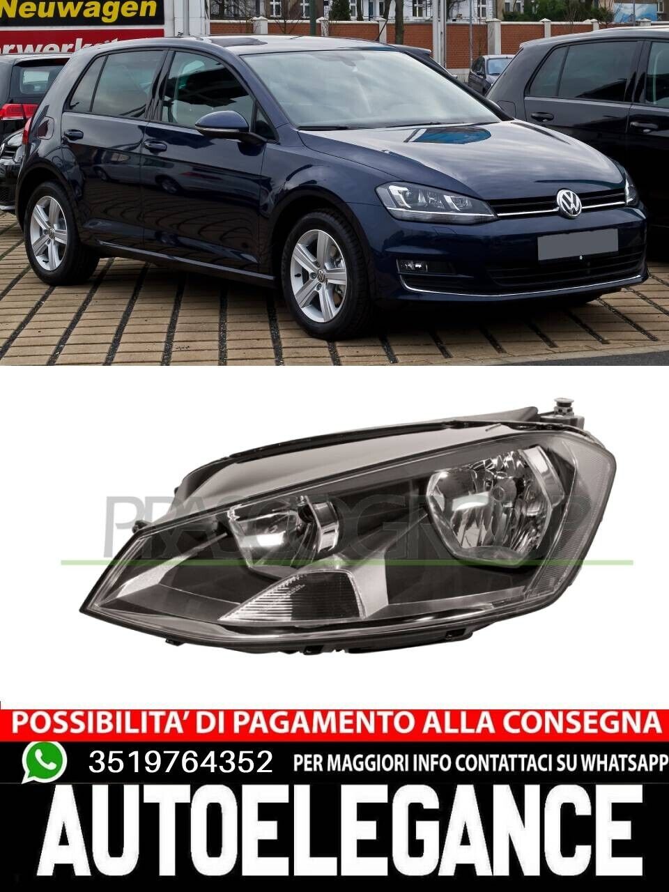 Faro fanale Prasco Sx Sinistro per VW GOLF VII con Motorino H7+H15 VG4004904
