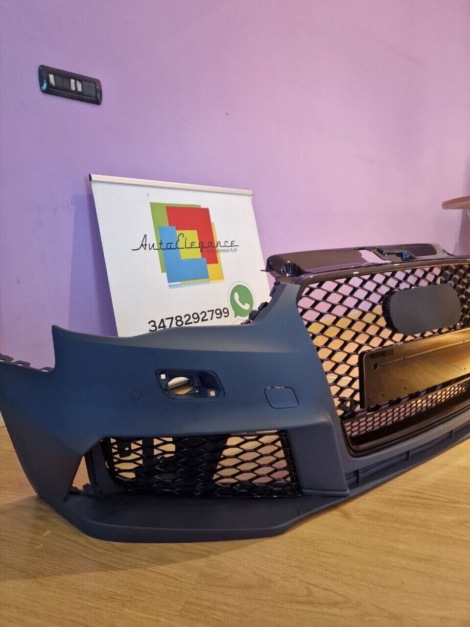 PARAURTI ANTERIORE ADATTO PER AUDI A3 8V 2012-2016 LOOK RS3 + GRIGLIA QUATTRO