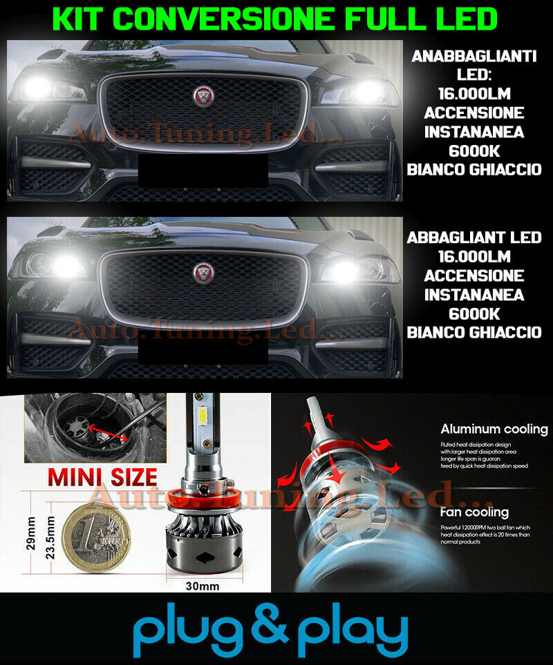 LAMPADE ANABBAGLIANTI + ABBAGLIANTI DIURNE JAGUAR F-PACE NO AVARIA 16.000LM