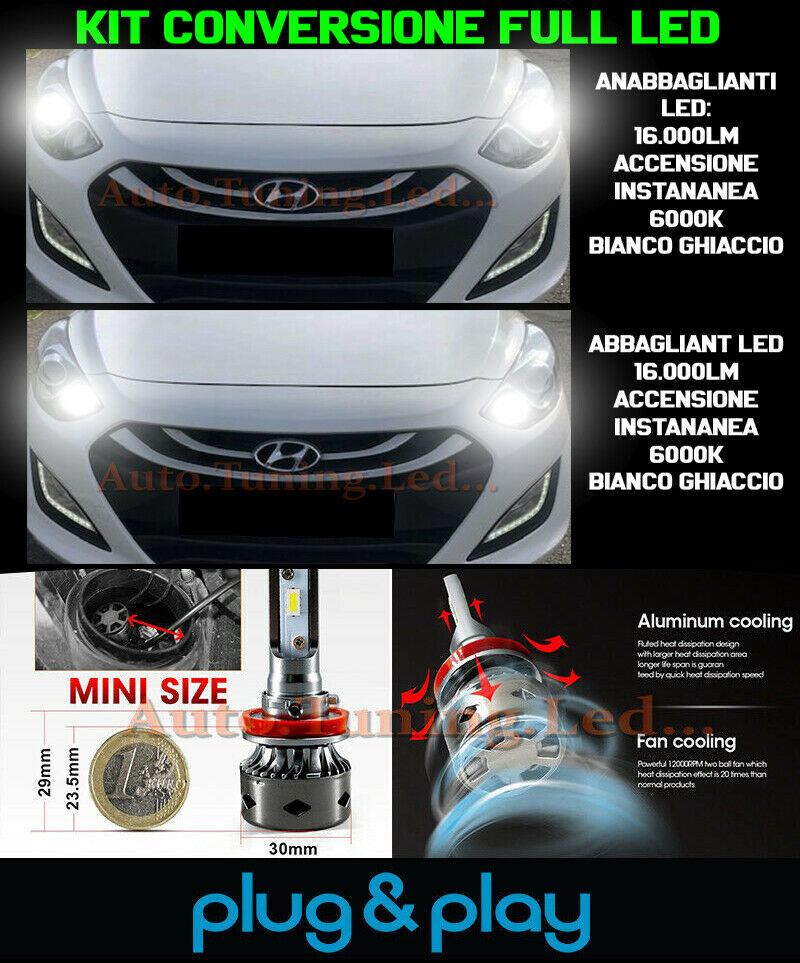 LAMPADE ANABBAGLIANTI + ABBAGLIANTI LED 16.000LM PER HYUNDAI I30 MK2