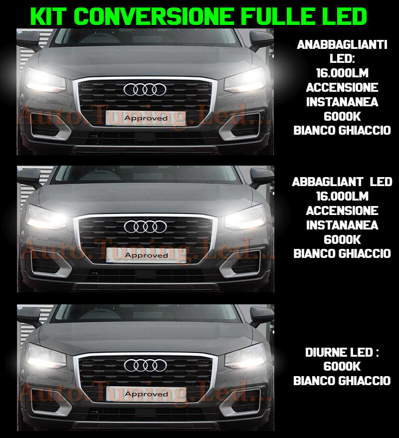 LAMPADE ANABBAGLIANTI + ABBAGLIANTI + DIURNE 16.000LM LED AUDI Q2 NO AVARIA