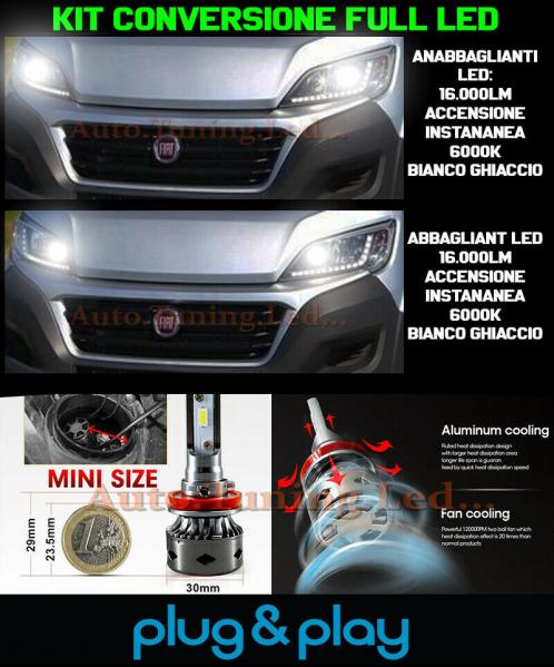 FIAT DUCATO DAL 2014+ KIT LED LAMPADE ABBAGLIANTI + ANABBAGLIANTI 16.000LUMEN