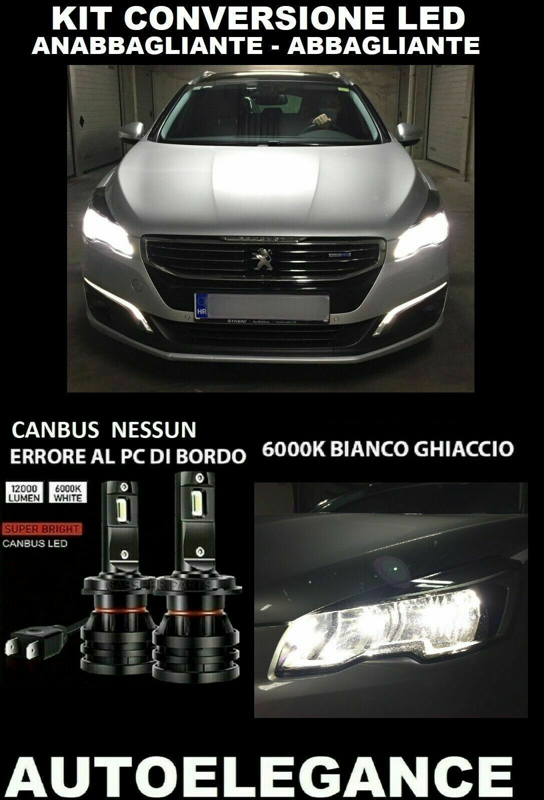 PEUGEOT 508 LAMPADE ANABBAGLIANTI ABBAGLIANTI LED 16.000LM - AT