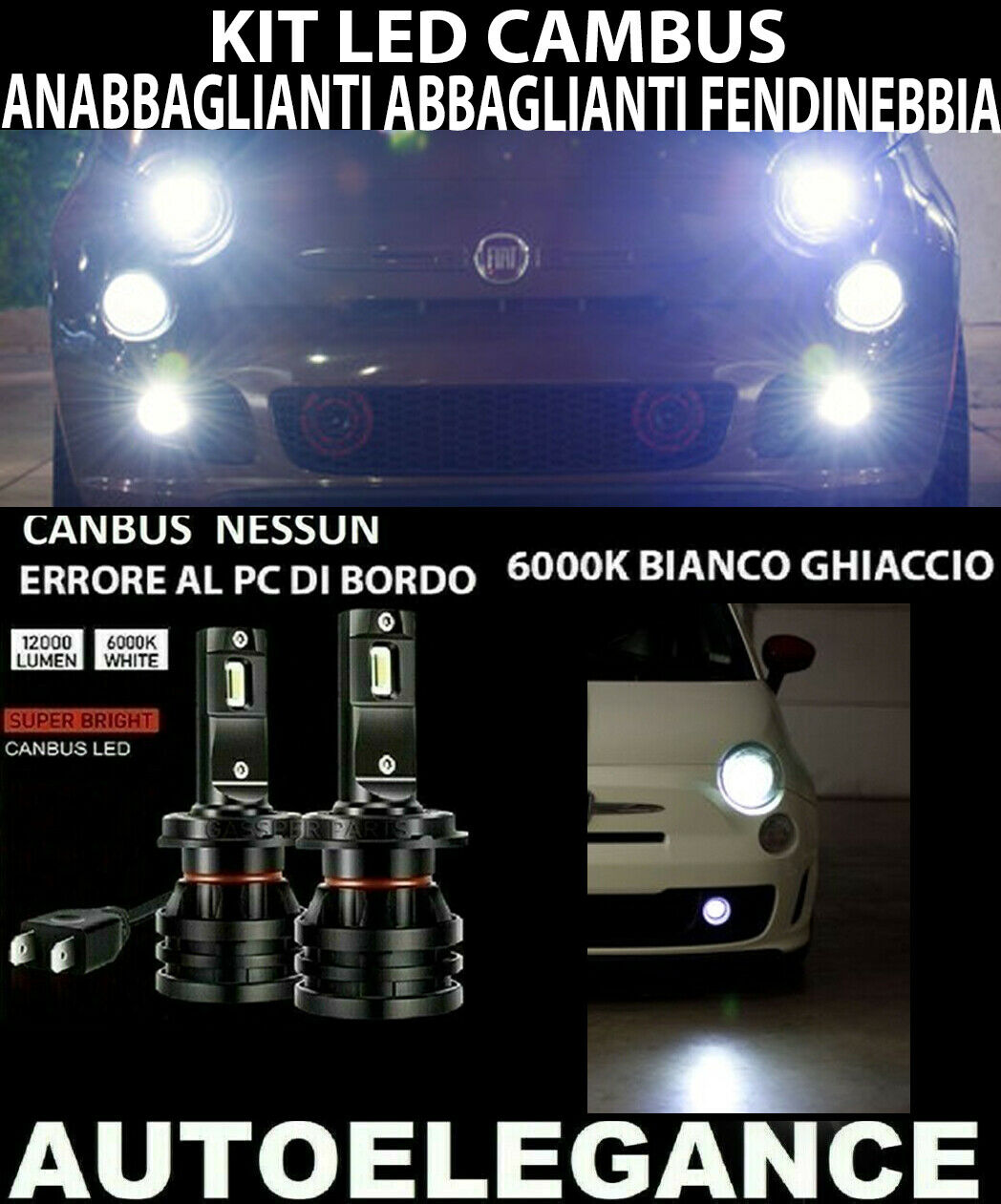 FIAT 500 500C ANABBAGLIANTI ABBAGLIANTI FENDINEBBIA LED 16.000LM CAMBUS - AT