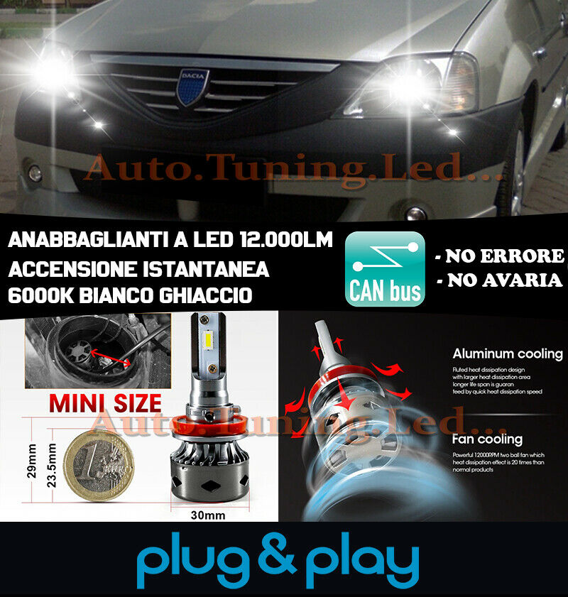 Lámparas H4 Cruce Carretera LED Dacia Logan I No Avería 12.000LM