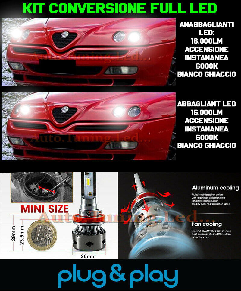 ALFA ROMEO GTV KIT LED LAMPADE ABBAGLIANTI + ANABBAGLIANTI 16.000LUMEN