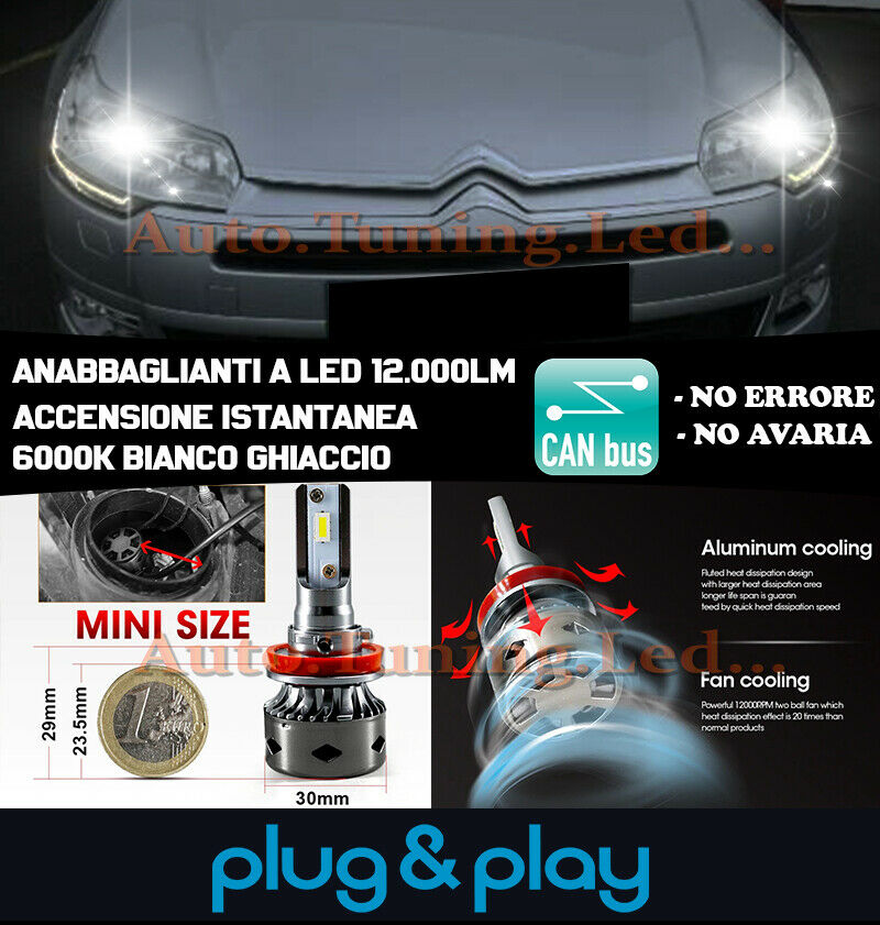 CITROEN C5 MK3 LAMPADE ANABBAGLIANTI LED 6000K 12.000LUMEN CAMBUS
