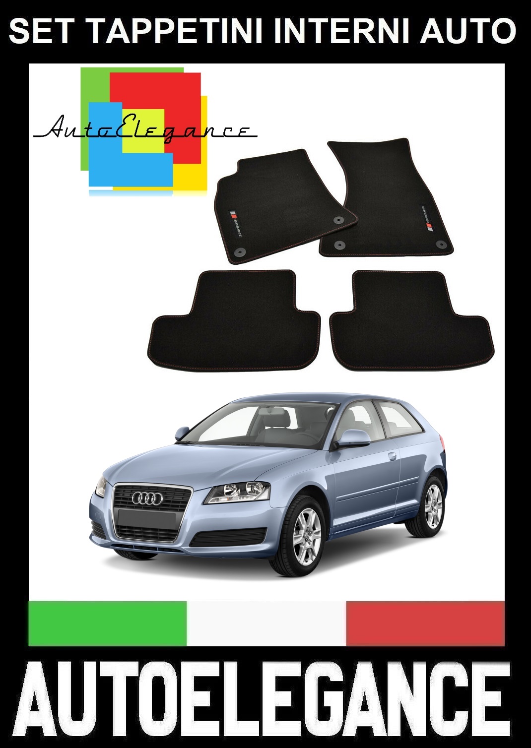 AUDI A3 8P 2003-2012 SET TAPPETINI IN VELLUTO DI ALTA QUALITA SPECIFICO