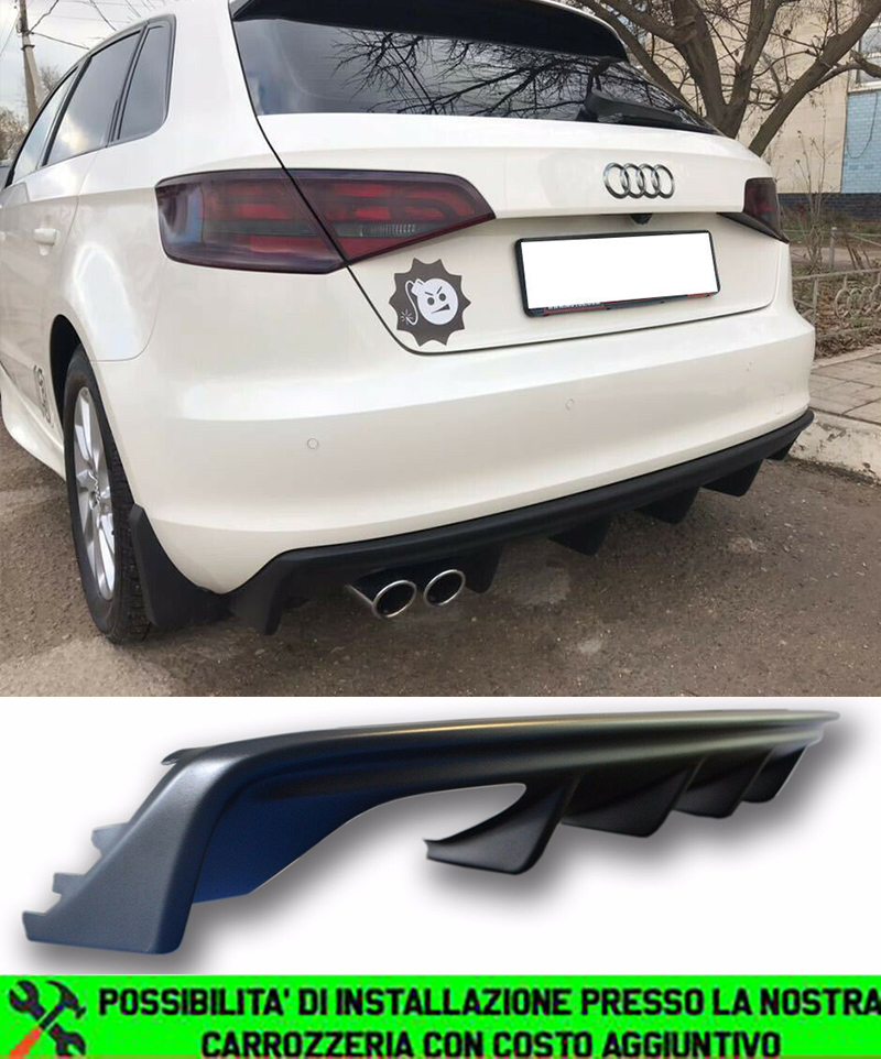 AUDI A3 8V 2012-2015 SPORTBACK DIFFUSORE POSTERIORE SOTTO PARAURTI LOOK RS3 NERO OPACO
