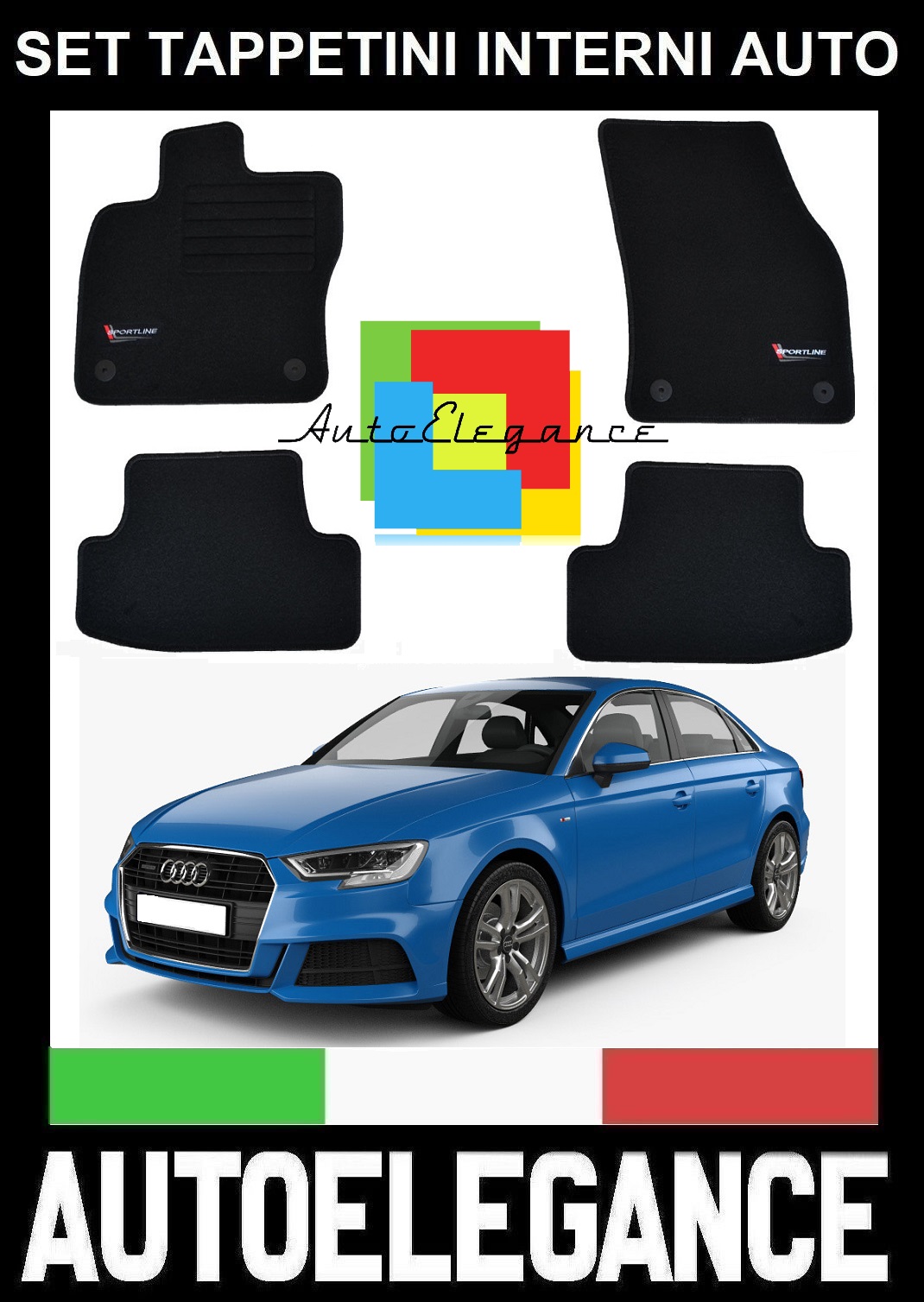 AUDI A3 8V 2016+ SET TAPPETINI IN MOQUETTE DI ALTA QUALITA SPECIFICO