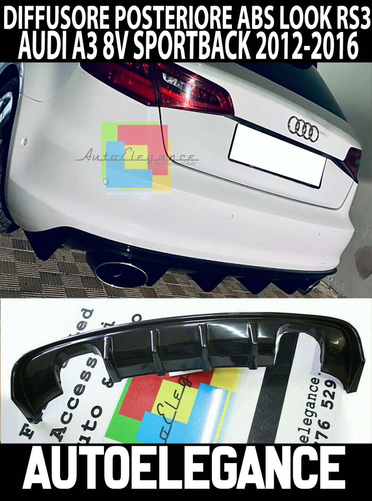 AUDI A3 8V SPORTBACK 2012-2016 SOTTO PARAURTI DIFFUSORE RS3 ABS DOPPIA USCITA .-
