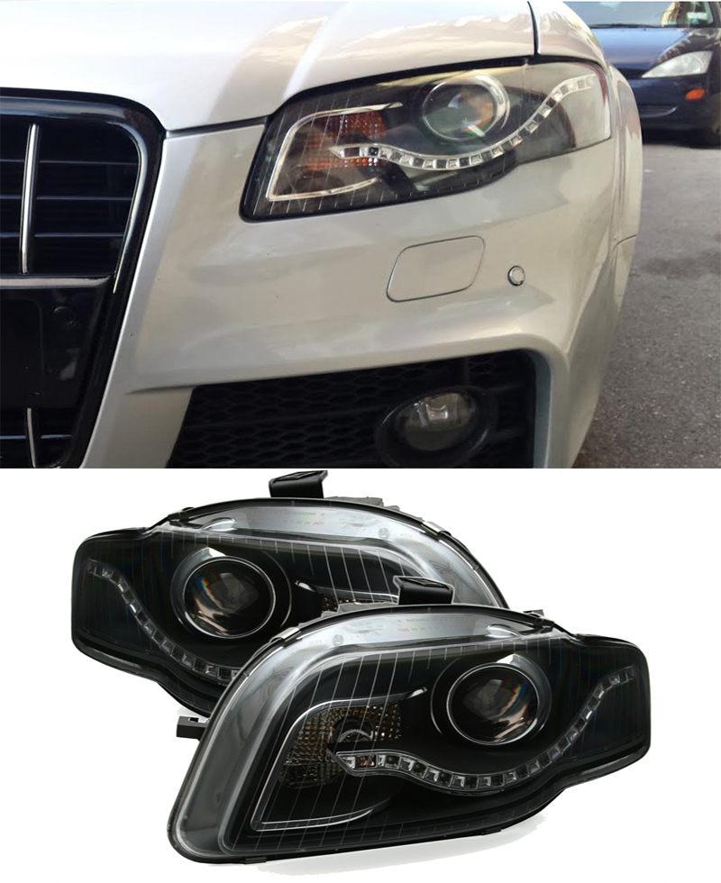 AUDI A4 B7 2004-2007 BERLINA + AVANT FARI ANTERIORI NERI A LED LUCE DIURNA