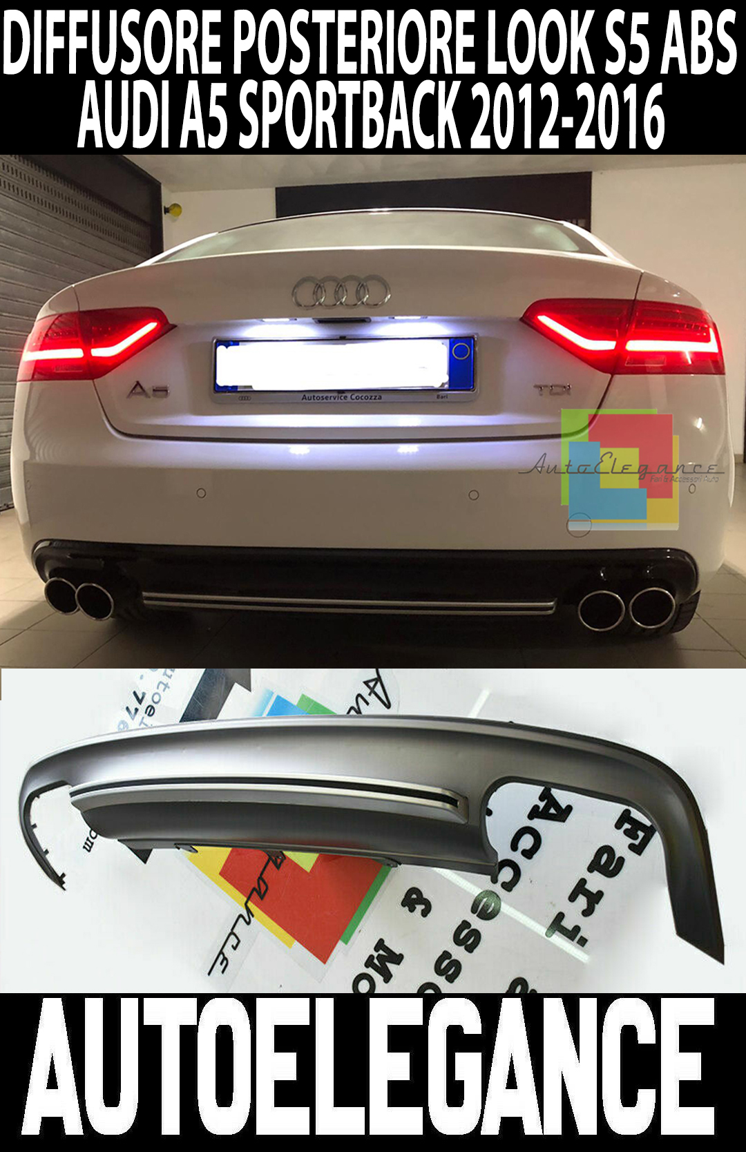 AUDI A5 SPORTBACK 2012-2015 RESTYLING DIFFUSORE POSTERIORE SOTTO PARAURTI DOPPIO