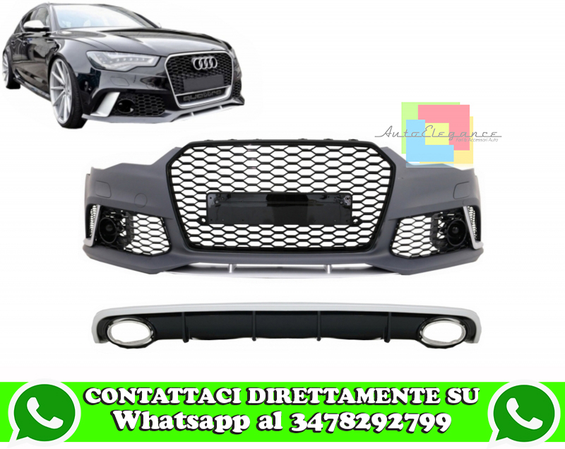 AUDI A6 4G C7 2011-2014 BODYKIT PARAURTI ANTERIORE E DIFFUSORE POSTERIORE LOOK RS6