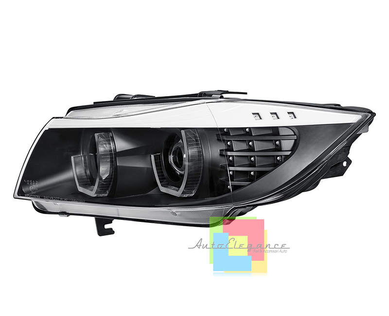 BMW SERIE 3 E90 E91 2004-2011 FARI ANTERIORI NERI CON ANGEL EYES LED BIANCHI CON FRECCIA LED