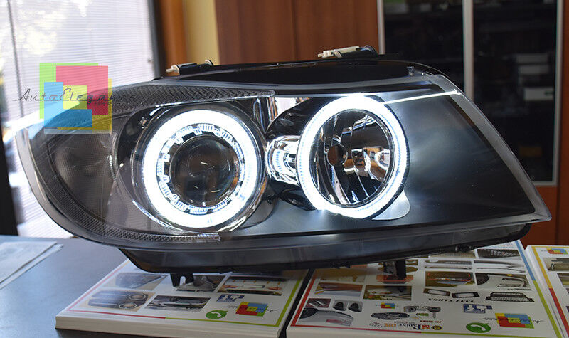 BMW SERIE 3 E90 E91 BERLINA TOURING 2004-2011 FARI NERI ANELLI ANGEL EYES LED -