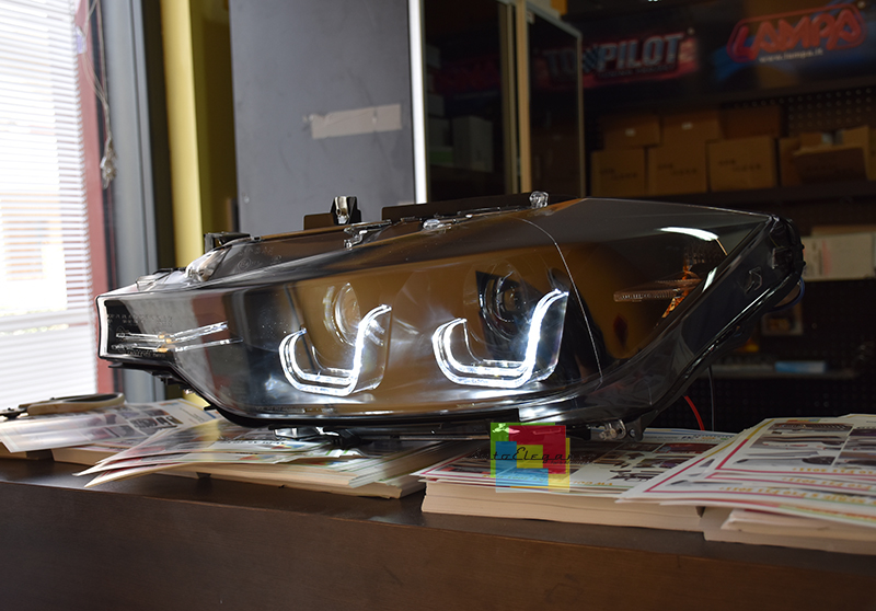 BMW SERIE 3 F30 F31 BERLINA TOURING 2011+ FARI ANTERIORI NERI CON LUCE DIURNA A