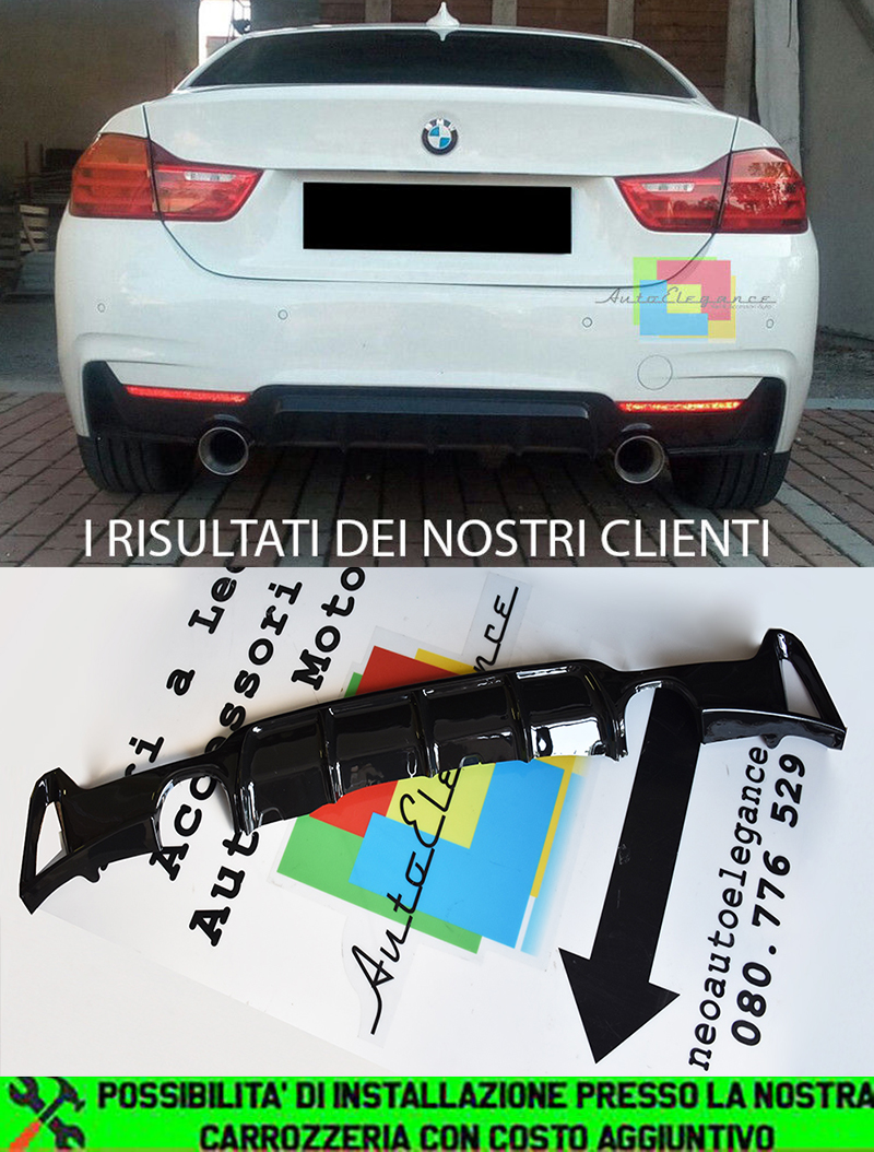 BMW SERIE 4 F32 F33 F36 2013+ DIFFUSORE POSTERIORE DOPPIO SCARICO SOTTO PARAURTI LOOK M NERO LUCIDO