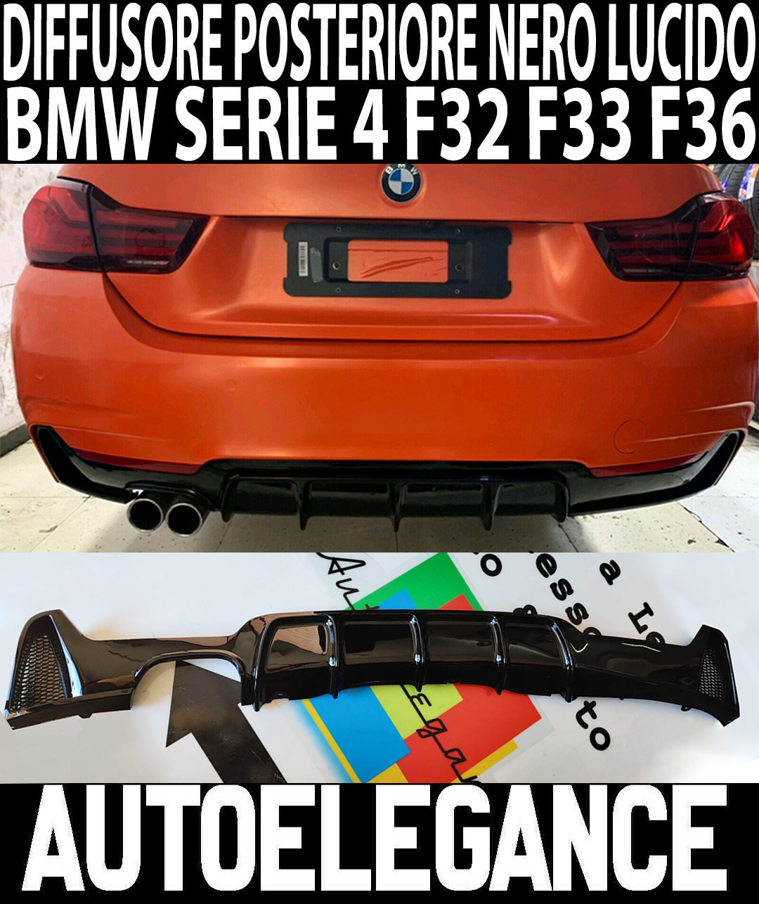 BMW SERIE 4 F32 F33 F36 DIFFUSORE POSTERIORE SOTTO PARAURTI M PERFORMANCE NERO LUCIDO