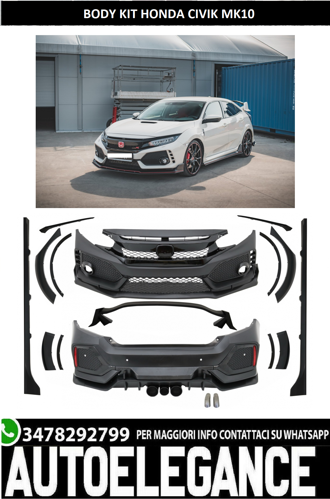 BODYKIT adatto per Honda Civic MK10 FC FK (2016-Up) Berlina tipo R-Design