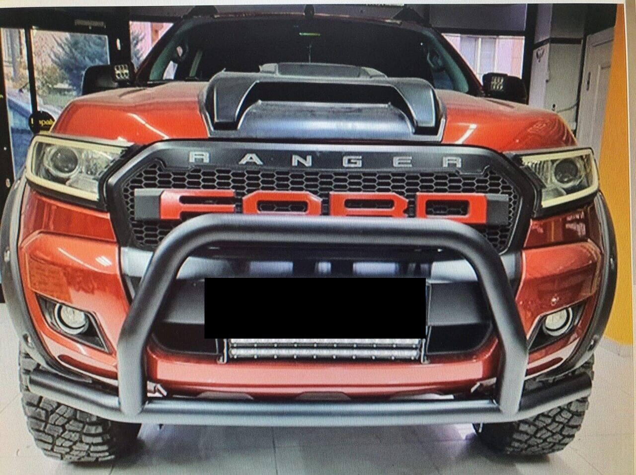 BULL BAR ANTERIORE NERO PER FORD RANGER TK T6 T7 2015-2019 IN ACCIAIO 90MM