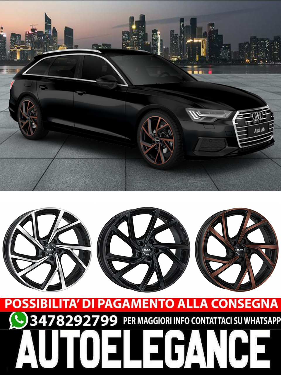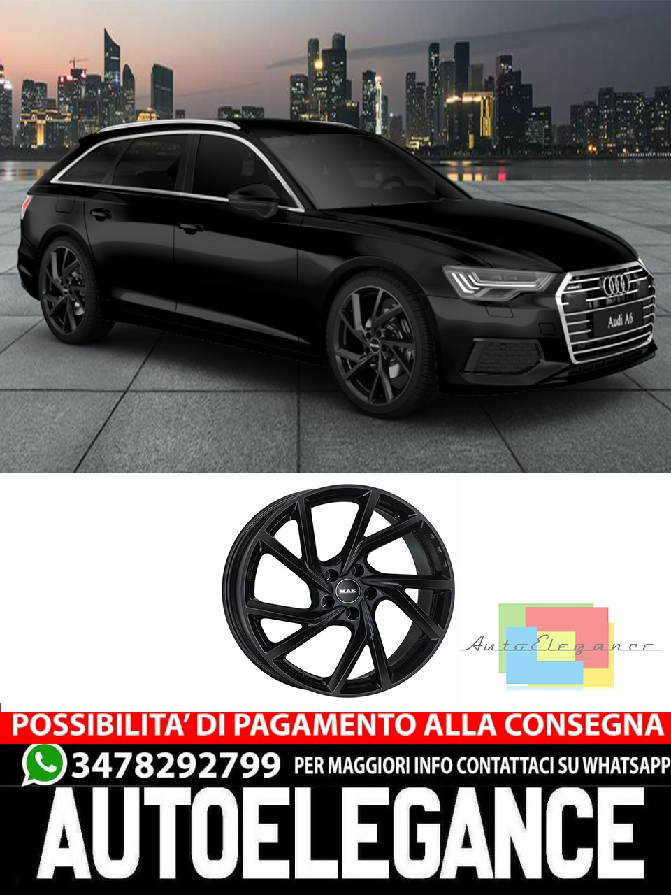 CERCHI CERCHIO IN LEG 17" 18"19" 20" Adatto per AUDI A6 MAK KASSEL NERO LUCIDO