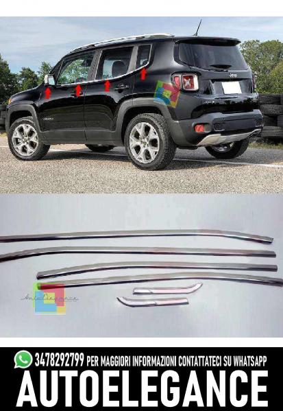CORNICE FINESTRINI FINITURA CROMATA ACCIAIO INOX ADATTO PER JEEP RENEGADE 2015+