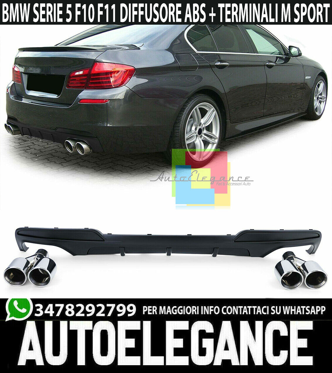 DIFFUSORE POSTERIORE M SPORT + TERMINALI DOPPI BMW SERIE 5 F10 F11 2011-2017