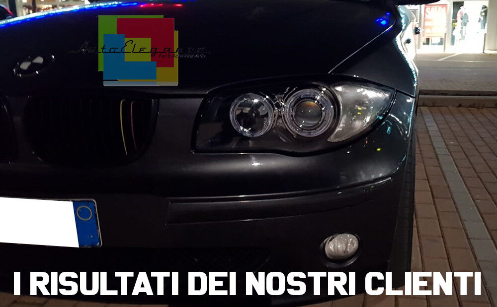 FARI NERI CON ANELLI ANGEL EYES BMW SERIE 1 E81 E82 E87 E88 04-11 LED BIANCHI -.